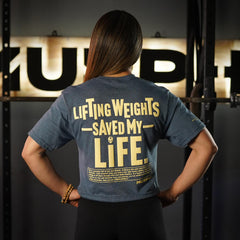 Crop Top Lifting Weights Saved my Life - Heather Blue
