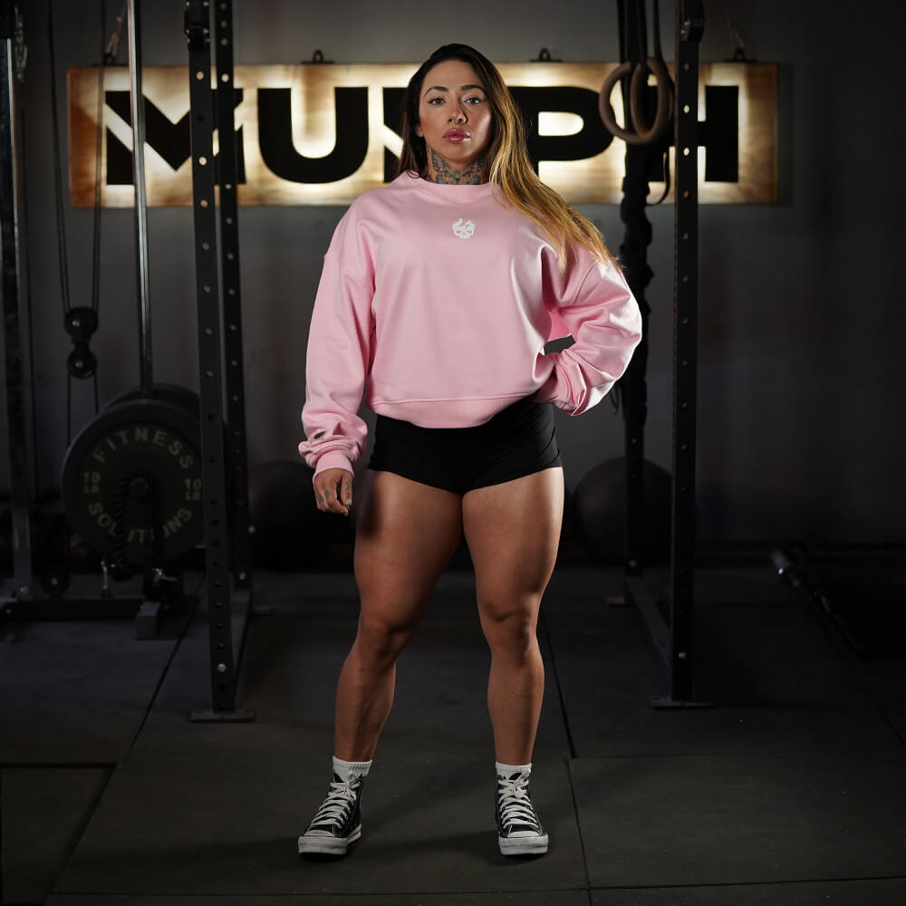 Oversize Crop Crewneck Skull Logo - Pink